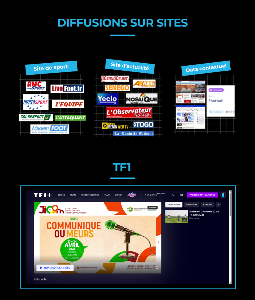 En tant que régie publicitaire leader en Afrique, nous connectons vos marques aux publics locaux et à la diaspora africaine grâce à des stratégies ciblées et performantes.