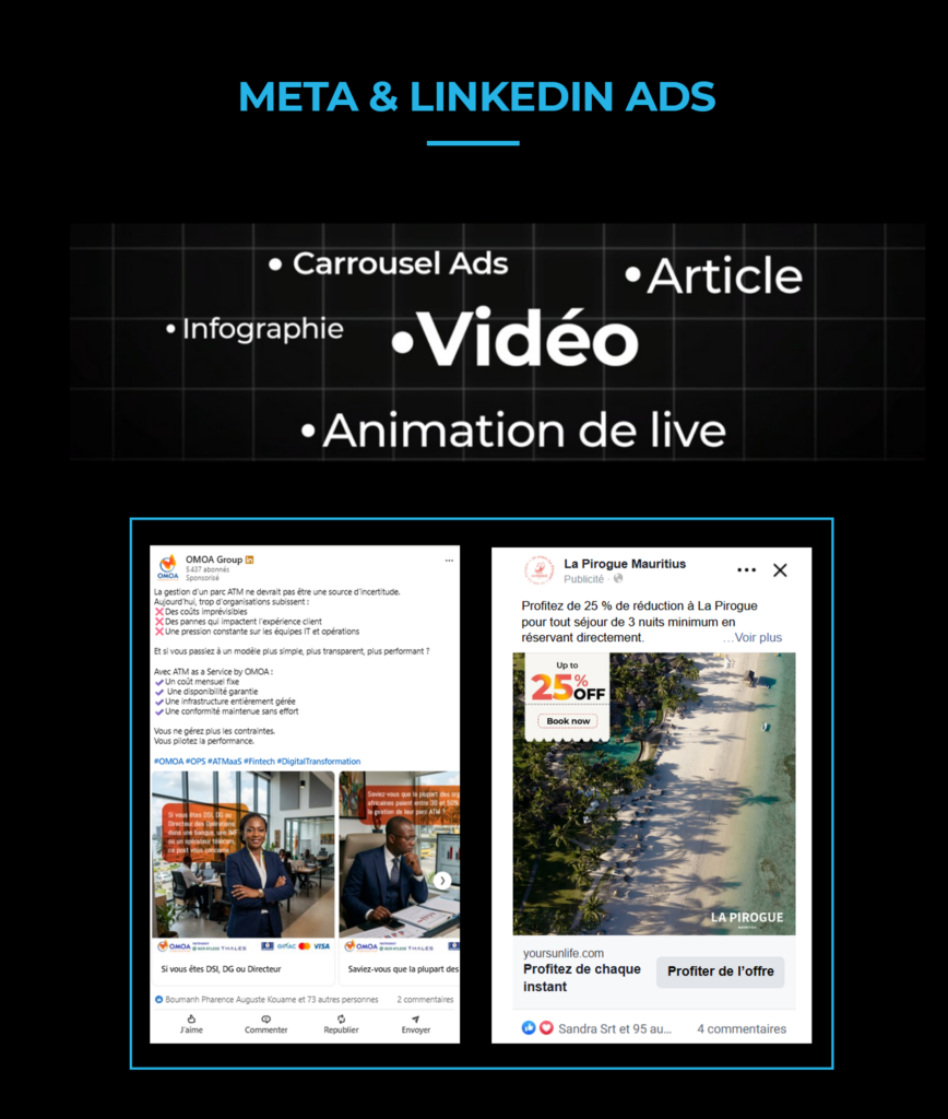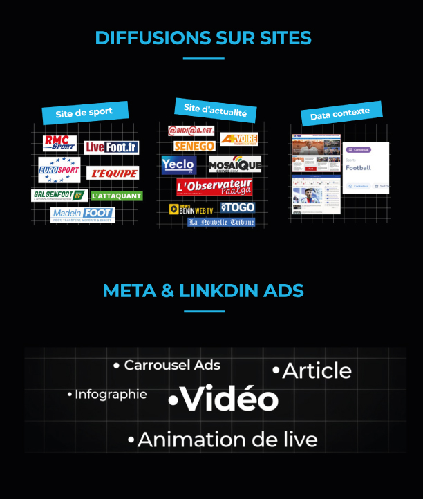 À travers notre réseau exclusif de 200+ sites, nous aidons les annonceurs à maximiser leur impact via des stratégies 360° : publicité digitale, community management, SEO, création de sites et applications. Notre engagement : offrir visibilité, innovation et performance pour accompagner la croissance digitale des entreprises.